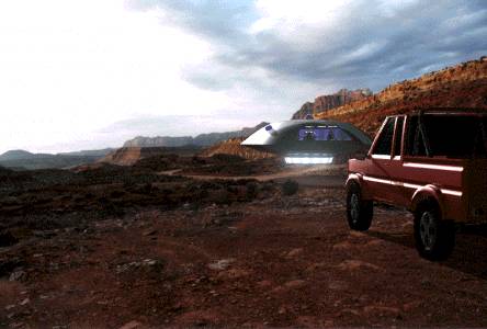 The first versions of the Jupiter 2 were developed in Alias/Power Animator. This model was used in initial video test sequences for compositing and flight characteristics tests. This page shows some still frames.